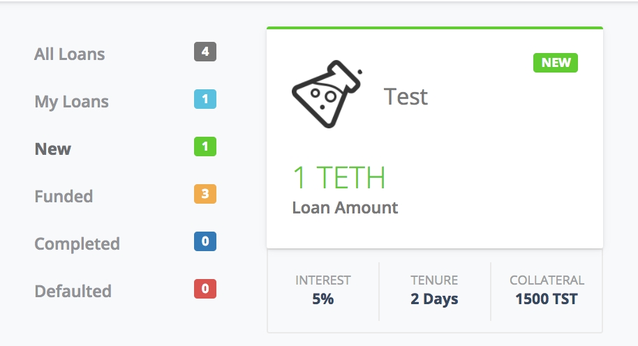 Go to the New loans section and select the loan offer that you want to fund based on the premium, collateral token type and the tenure offered.